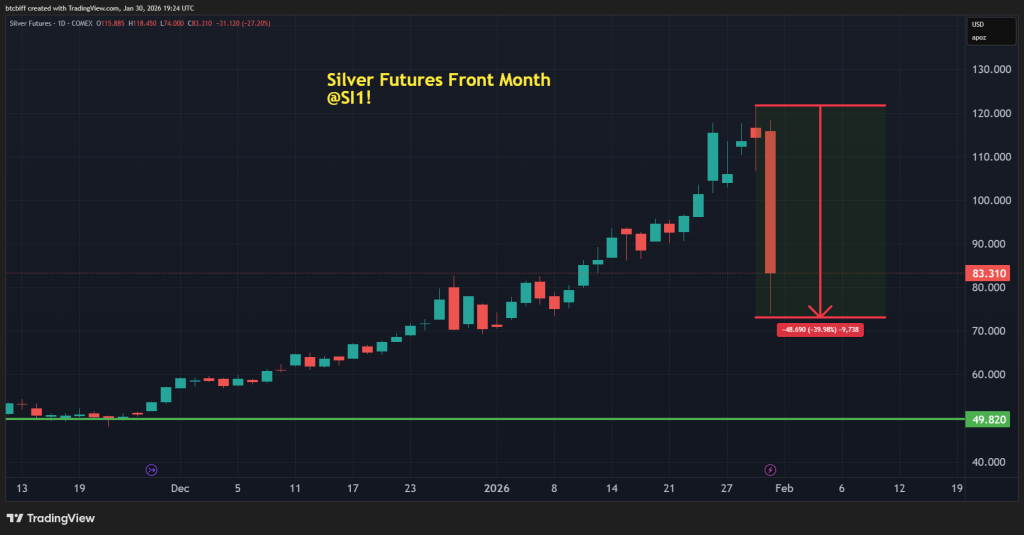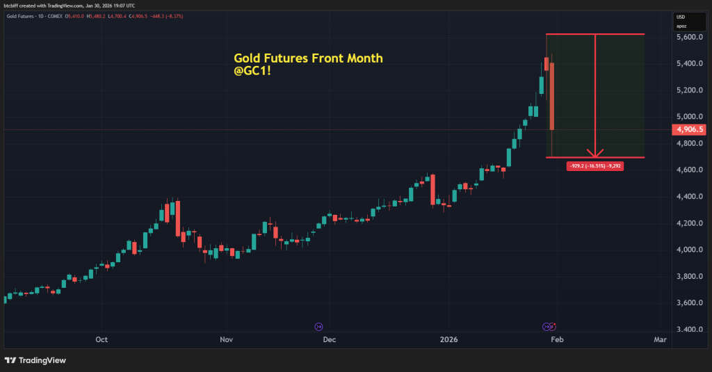 However, prices plunged sharply on January 30—gold dropped 9-11% to around $4,895 spot, while silver cratered 28-31% to $83-$99.