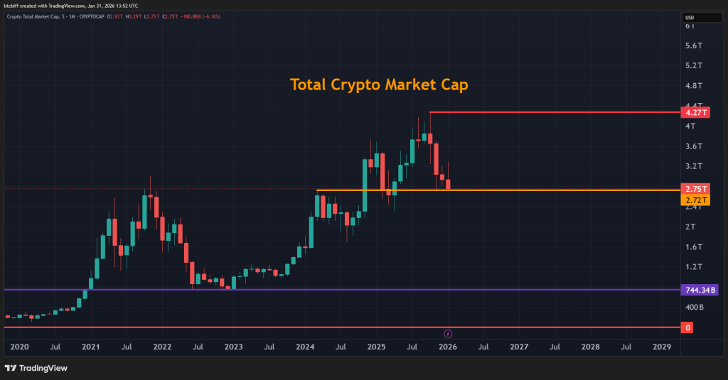 January 2026 has been a rollercoaster for the crypto market, marked by significant price swings amid economic pressures and policy developments. The total market cap dipped 1.7% to $3.06 trillion by late January, reflecting broader economic stress, lack of fresh capital inflows, and geopolitical tensions.
